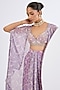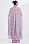 Featuring a lilac cape in viscose chinon base with mosaic print and hand embroidery. It is paired with a blouse and a draped skirt. Accentuate with statement jewellery and heels for a wedding or sangeet ceremony ceremony.