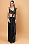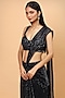 Featuring a navy blue pre-draped saree in sequins net base with sequins embroidery. It is paired with a matching blouse.