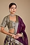 Featuring a plum banarasi lehenga in silk base with zardosi embroidery. it is paired with an embroidered blouse and an organza dupatta. Style this designer lehenga with kundan polki jewellery, a polti bag and block heels for a wedding, sangeet or engagement celebrations.