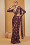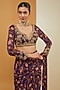 Featuring a purple pre-draped saree in viscose chinon and crepe base with print. It is paired with a hand embroidered blouse. Style it with statement jewellery and heels for festive occasions.
