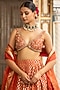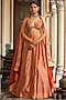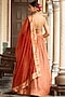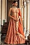 Featuring a rust lehenga in banarasi chanderi base. It is paired with a pure raw silk blouse having mirror and zardosi embroidery, including an organza dupatta. Accentuate it with statement earrings and heels for weddings or sangeet ceremonies.