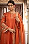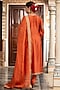 Featuring a rust kurta in pure silk chanderi base with mirror and zardosi embroidery. It is paired with modal satin churidar pants and a pure organza dupatta. Accentuate it with statement earrings and heels for sangeet ceremonies.