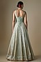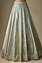Featuring a sea green lehenga in banarasi chanderi, tissue silk, and raw silk base with dori embroidery. It is paired with an embroidered blouse and a dupatta. Accentuate it with kundan jewellery, embellished heels and a clutch for a wedding or sangeet ceremony.