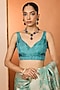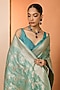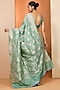 Featuring a sea green saree in pure handloom katan silk base. It is paired with a pure silk unstitched blouse. Accentuate it with statement jewellery and heels for a wedding or mehendi ceremony.