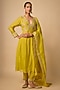 Yellow Chanderi Silk Hand Embroidered Anarkali Set