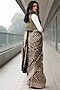 Featuring a black saree in katan silk and cotton moss base with zari embroidery. It is paired with a contrasting white blouse and a velvet jacket.