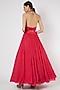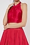 Featuring a fuchsia skirt in crepe base. It is paired with a matching halter top in raw silk.