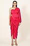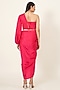 Featuring a fuchsia pink corsetted top in bemberg modal satin base with bishop sleeves. It is paired with a matching skirt.
