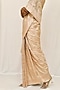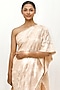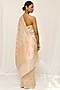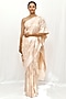Featuring a gold saree in pure katan silk base with zari jaal work. It is paired with an unstitched blouse. Accentuate it with statement earrings and heels for a festive occasion or engagement ceremony.