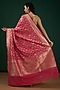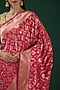 Featuring a red handwoven banarasi saree in pure katan silk base. It is paired with an unstitched blouse. Accentuate it with statement jewellery and heels for a wedding, sangeet or engagement ceremony.