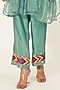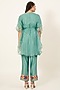 Featuring a teal green cape in chanderi and organza base with thread embroidery. It is paired with a matching kurta, a belt, and pants.