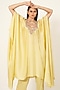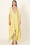 Featuring a yellow kaftan style kurta in bemberg modal satin base with thread embroidery. It is paired with matching pencil pants.