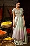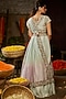 Featuring an ice blue lehenga in organza base. It is paired with a matching silk satin blouse, a silk dupatta and a belt.