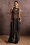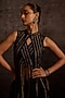 Featuring an indigo blue and copper fringed top in rayon base with stripe applique embroidery. Style it with pants, heels and statement earrings for festive gatherings.