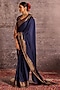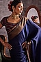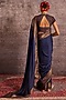 Featuring an indigo blue saree in georgette satin base with brocade border detail. Style it with a blouse, heels and statement earrings for weddings.