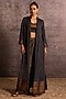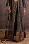 Featuring an indigo blue long jacket in rayon base with brocade border detail and applique embroidery. Style it with pants, top and statement earrings for a boho-themed getaway.