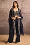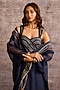 Featuring an indigo blue cape style overlay in silk organza base with applique embroidery. Style it with pants, top, heels and statement earrings for a festive look.