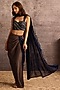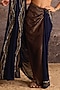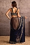 Featuring an indigo blue pre-draped dhoti saree in silk zari base with applique embroidery and stripe print. Style it with a blouse, statement earrings and heels for wedding ceremonies.
