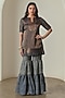 Featuring an indigo and copper kurta in tissue silk base with half sleeves, zari border and badla work. Style it with silver stud earrings and wedges for festive occasions, sangeet or cultural celebrations.