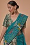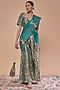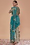 Teal Blue Brocade and Organza Thread Work Bell Bottom Pant Saree Set