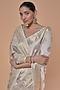 Featuring a white saree in chinia silk base with leaf motifs and golden jaal having a running blouse piece.