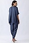 Featuring a blue kaftan tunic in sandwash satin base with nalki and moti embroidery. It is paired with dhoti pants. Style it with stud earrings and heels for a festive occasion.