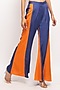 Featuring a blue bustier in bemberg modal silk base with halter neck. It is paired with a matching blue and orange panelled flared pants.