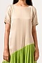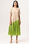 Featuring an ecru and green gathered dress in sustainable silk base with color blocking and half sleeves.