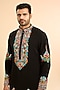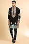 Featuring a black kurta in boomario fabric base with threadwork. It is paired with aligarhi pants. Style it with mojaris for a festive occasion, cultural event, wedding or sangeet ceremony.