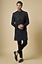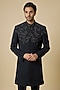 Featuring a black kurta in boomario base with handwork. It is paired with trousers. Perfect wear for a festive occasion, wedding or engagement ceremony, exuding traditional charm and timeless elegance.