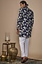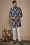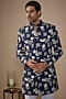 Featuring a blue nawabi jacket in cotton silk base with thread embroidery. It is paired with trousers. Perfect attire for any festive occasion or sangeet ceremony, exuding traditional charm and elegance.
