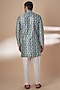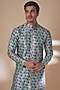 Featuring a blue kurta in silk base with digital print and thread embroidery. It is paired with white aligarhi pants. Perfect for a sangeet or festive ceremony.