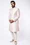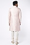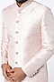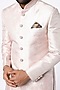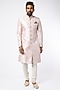 Featuring a blush pink indo western sherwani in jacquard base with hand embroidery. It is paired with contrasting cream pants.