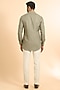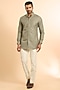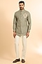 Featuring a green bundi jacket in suiting base with handwork. It is paired with a shirt style kurta and trousers. Style it with mojaris for a cultural event, mehendi, wedding, engagement or sangeet ceremony.