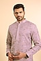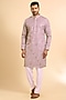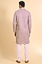 Featuring a grey kurta in silk base with threadwork. It is paired with aligarhi pants. Style it with mojaris for a festive occasion, cultural event or intimate pooja ceremony.