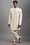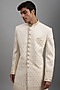 Featuring an ivory sherwani in lucknowi base with handwork and buttons. It is paired with matching aligarhi pants.