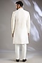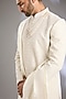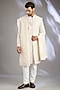 Featuring an ivory sherwani in silk base with handwork. It is paired with a kurta, aligarhi pants and a dupatta. Perfect wear for a wedding or engagement ceremony, exuding traditional charm and elegance.