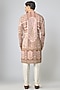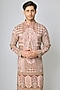 Featuring a multi-colored kurta in silk base with threadwork and machine embroidery. It is paired with aligarhi pants. Style it with mojaris for a festive occasion, wedding or engagement ceremony.