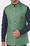 Featuring a green bundi jacket in a matka silk base. It is paired with a shirt and pants. Perfect wear for a festive occasion or mehendi ceremony, exuding charm and elegance.