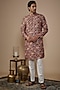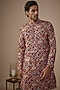 Featuring a pink patola kurta in jacquard base. It is paired with aligarhi pants. Perfect attire for any festive occasion or pooja ceremony, exuding traditional charm and elegance.