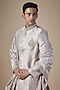 Featuring a pink sherwani in raw silk base. It is paired with pants and a stole. Style it with a mala, safa and pair of mojaris for a traditional look, Perfect attire for your wedding or engagement ceremony.