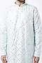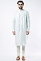 Featuring a sky blue kurta in silk base with mirror work. It is paired with matching churidar pants.