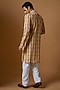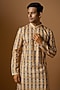 Featuring a yellow kurta in cotton base with digital print and thread embroidery. It is paired with contrasting white pyjama pants.
