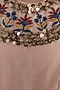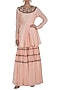 Featuring a peach peplum top in chanderi silk base with hand embroidery. It is paired with matching sharara pants.