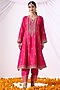 Magenta Banarasi Chanderi Threadwork Kalidar Kurta Set