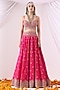 Featuring a magenta lehenga in banarasi chanderi base with sitara and zari embroidery. It is paired with a banarasi chanderi v-neck blouse and a silk organza dupatta having boota embroidery. Accentuate it with statement jewellery and heels, perfect for wedding receptions, festive soirees, or sangeet nights.