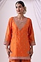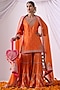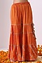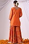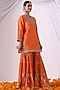 Featuring an orange kurta in chanderi base with zari embroidery. It is paired with dola silk tiered gharara pants and an organza dupatta. Accentuate it with statement jewellery and heels, perfect for wedding receptions, festive soirees, or sangeet nights.