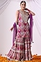 Featuring a purple short kurta in dola silk base with digital print and gota work. It is paired with dola silk gharara pants and a net dupatta. Accentuate it with statement jewellery and heels, perfect for wedding receptions, festive soirees, or sangeet nights.