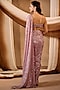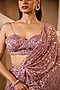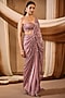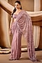 Dusky Rose Pink Silk Crepe Sequins Embroidered Draped Saree Set