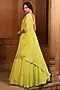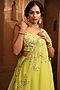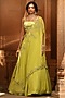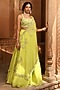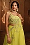 Featuring a lime green lehenga in georgette and organza base. It is paired with a cape having resham, pearl and sequins hand embroidery, including an embroidered blouse. Accentuate it with statement jewellery and heels for a wedding or engagement ceremony.